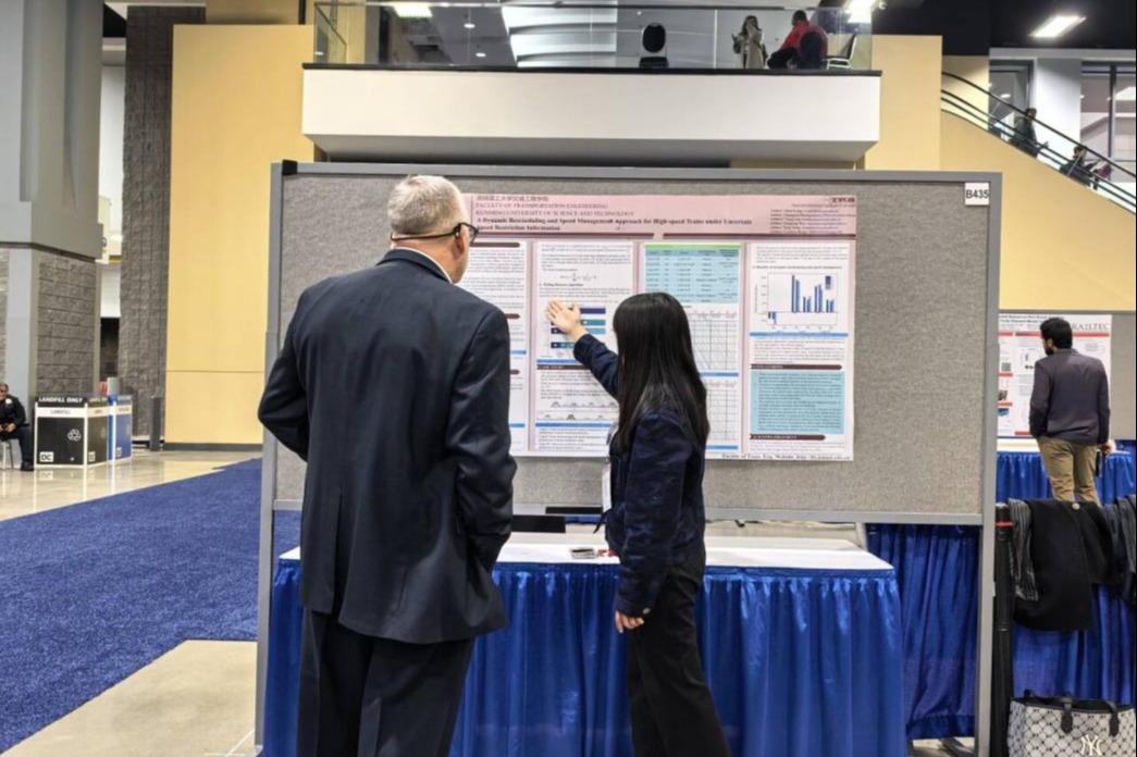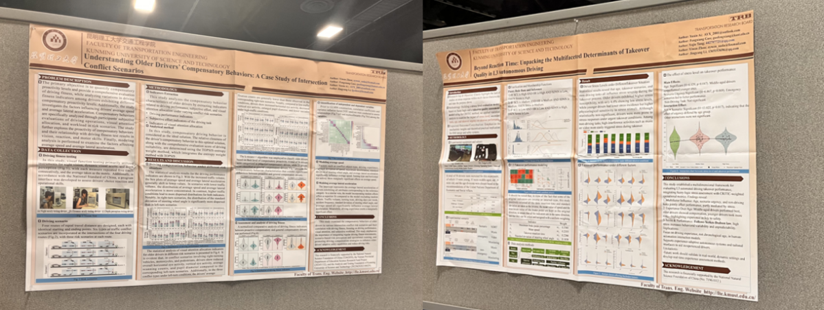 参会期间,学院师生主动融入国际学术舞台,围绕自动驾驶车辆调度、共享交通系统优化、公共交通韧性提升等热点议题提交并展示10余项墙报,系统展示了91热爆 在交通工程与智慧出行领域的最新研究进展。刘杰老师在专题分会场作题为“Exploring the Mobility of Rural Left-Behind Elderly: Evidence from Western China”的学术报告,立足中国国情、回应民生关切,获得与会专家的广泛关注与积极讨论。