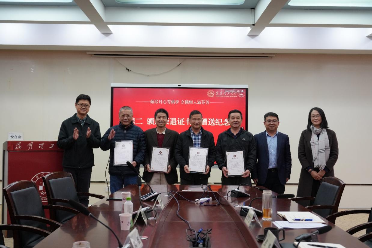 随后,学院党政班子成员为四位退休教师送上了精心准备的纪念礼物,并颁发了荣退证书,以表达对他们的深深敬意和感激之情。