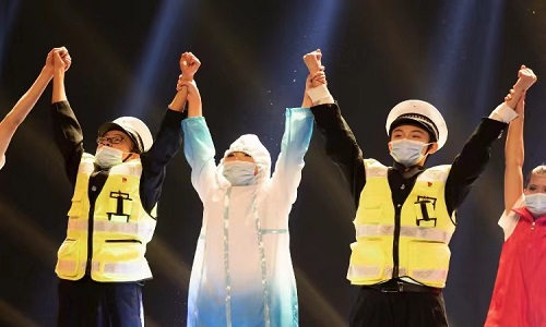 的学子表现优异,当聚光灯打在他们的晶莹剔透的汗珠上时,他们用眼里的光,点亮了心中的火,用无声的表演,向观众诉说着那一个个远在抗疫前线的平凡的英雄。