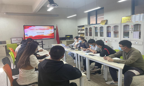 团委书记晁洁带领团支书学习校团委下发的《共青团中央关于开展“喜迎二十大、永远跟党走、奋进新征程”主题教育实践活动的通知》和《共青团云南省委关于开展“喜迎二十大、永远跟党走、奋进新征程”主题教育实践活动的通知》。
