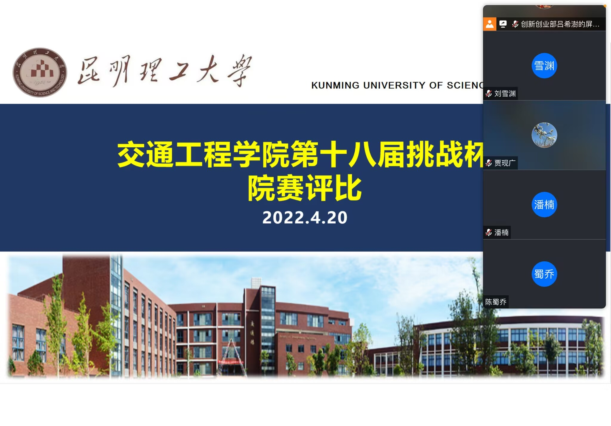 关于第十八届“挑战杯”全国大学生课外学术科技作品竞赛项目院赛评比的通知》,切实做好我校第十八届“挑战杯”全国大学生课外学术科技作品竞赛备赛以及2022年学生课外学术科技创新基金项目培育工作。4月20日,院团委组织开展十八届“挑战杯”全国大学生课外学术科技作品竞赛院级立项评比,邀请四位专家老师参加此次函评审核。