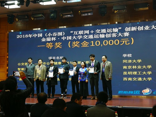 该项比赛自创办以来,就致力于服务交通强国和创新型国家建设,聚焦交通发展新技术、新产品、新服务、新业态。主旨是培养学生科研实践能力、创新创业能力和综合素质,推动校园的“大众创业、万众创新”。本次比赛于2018年9月正式启动,来自全国众多所交通类学校的1000多支队伍参加比赛,经过初选、复赛等环节的层层筛选,最终有36支队伍成功晋级决赛。在决赛中,我校李柯杭、李健波、王永鑫等五人组成的参赛队伍获得一等奖,奖金10000元。