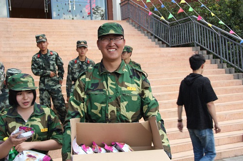 在交通楼广场对2018级的教官与新生进行慰问。出席此次慰问活动的人员有交通院党委书记马旭东、党委副书记张强、学生工作办公室主任王懿娜、团委负责人晁洁、2018级辅导员寸议鹏、武警机动第八支队副参谋长李永林中校、武警机动第八支队五大队副队长田万良少校、张小飞、蒋晓龙班长以及军训的教官和2018级全体参训新生。