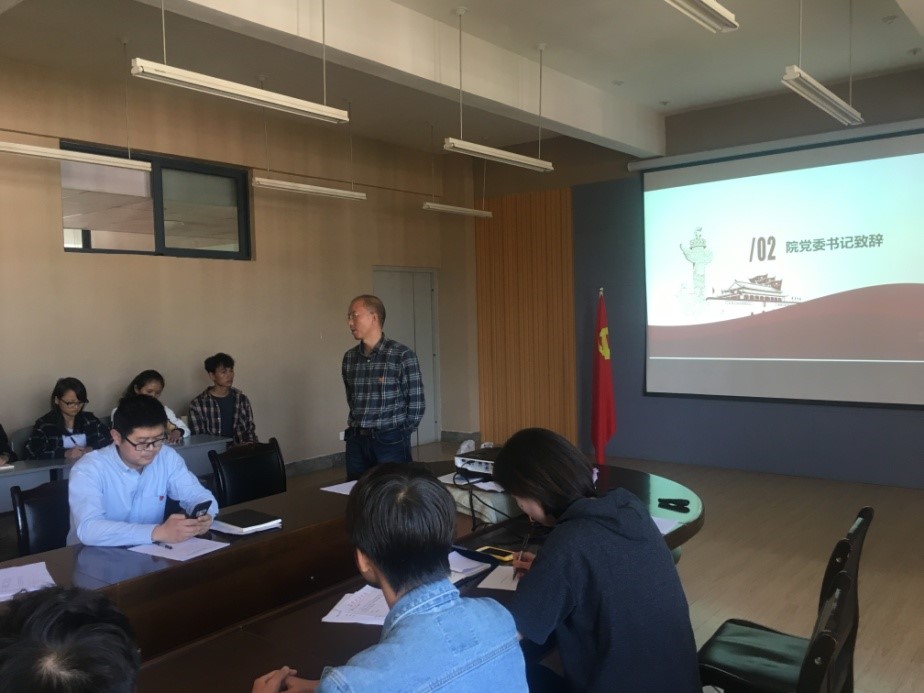 此次入党宣誓仪式由张强老师主持,会议伊始,全体人员起立,在庄严雄浑的《国际歌》伴奏下一起唱响国际歌。接着,学院党委书记马旭东同志讲话,他表示:中国共产党的宗旨是全心全意为人民服务,党始终代表中国先进生产力的发展要求,始终代表中国先进文化的前进方向,始终代表中国最广大人民的根本利益,学生党员必须要认清自己无产阶级的身份,坚决维护其他无产阶级的利益,加入党组织首先要承认它的宗旨,其次要发挥自己的先锋模范带头作用,尽管预备党员没有选举权、表决权,但仍要履行党员义务,以一名党员的标准严格要求自己,并且对自己的要求应该比一般人更高而且更严格,要用实际行动和表现来践行自己的诺言。
