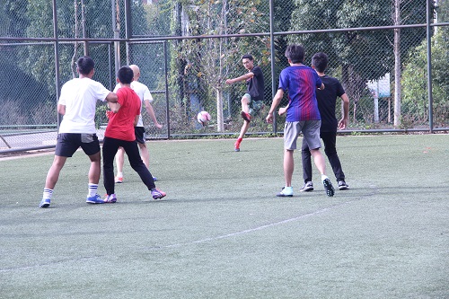 院运会足球比赛决赛在怡园五人制足球场顺利举行。参加此次决赛的有17物流、16交运、18交运、17交运的四支足球队。参赛球员们热情十分高涨,都怀着必胜的信念参加此次比赛。