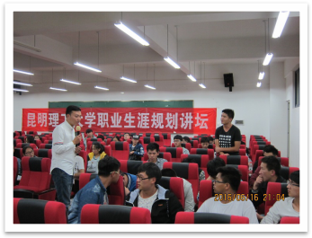 接着嘉宾讲述了自己的整个创业历程,包括:来到大学之后怎样接触到创业概念,在创业道路上怎样磨炼自我的品质。讲述过程中有提到赚到收入的快乐,也诉说了凌晨在倾盆大雨中工作的辛酸等等……但经历过这些的他现在都能以一种较平和的心态来看待这些问题了。他说:“只要保持一颗平和的心,没什么坎是过不去的。”最后嘉宾给同学们提了三点建议:一、创业同时不能松懈学业;二、多读书,读好书;三、要开阔自己的视野,勇于想象和创新。