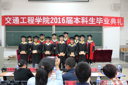 典礼开始,在主持人宣布2016届毕业生毕业典礼开始并介绍到会人员之后,首先院长何民教授致辞,表达了对毕业生的殷切期望和美好祝福,并勉励大家以后在工作中脚踏实地、坚持不懈、不断努力,步提高自己能力,做个对社会有用的青年。同学们对院长何民饱含深情的话语报以热烈的掌声。接着是教师代表陈峥教授发言,言语中充满了对学生的祝福与不舍。最后上台发言的是优秀毕业生代表车辆工程的吕天阳,他对老师们四年的栽培表示了感谢,同时对未来充满了憧憬。紧接着是颁奖环节,主持人宣布了优秀毕业生名单,并颁发奖状,副院长雷基林教授宣读获得学位的同学名单并授予学位证书。最后院党委书记马旭东讲话,强调分开只是为了更好的遇见,梦想的道路就在前方,只待大家一路披荆斩棘!讲话结束,主持人宣布毕业典礼结束,全体师生拍照合影留念!